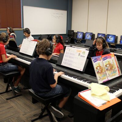 Students will learn basic keyboard skills in our state-of-the-art piano labs. Teachers can communicate and provide feedback to each student through headsets, allowing everyone to learn at their own pace.